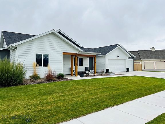 Stunning and charming modern single level home perfectly situated on nearly a half acre. Sellers have taken immaculate care of this beautiful home with Bridger Mountain views. This property boost a three car garage for your cars and toys, luxury vinyl flooring, barn doors to the office and rooms off the livingrooom, tile gas fireplace, stainless steel appliances, high end lighting, laundry room, dual vanities in both bathrooms, and coffee nook off kitchen. This open and inviting floor plan also offers vaulted ceilings, loads of storage and cabinet space and much more. This home is priced to move. Buyer to verify square footage.