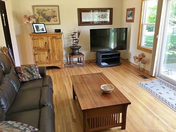 In Town Acreage!Nearly 1 1/2 acres surrounded with Pine trees, Lilac's, fruit trees, perennial flowers, fenced in raised beds of strawberry's, asparagus, veggies & flowers. A secluded, private back yard to find peace and contentment right here in the place you'll love to call Home..Beautiful hardwood and tiled floors, built in cabinetry, with plenty of storage. The Roof, Windows, Furnace/AC and more have all been updated. You'll be dry and comfortable with a tiled basement AND a whole house generator. A solid,welcoming home you'll never want to leave. There is nothing quite like this... convenient location, well built, updated home on a 1.43 acres lot. Let me show you now.