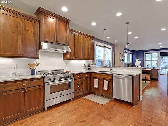 Bright and spacious home just minutes from Multnomah Village. Wooded views and a private back patio with terraced garden, perfect for entertaining or enjoying a warm summer evening. Kitchen boasts a professional-grade range, stainless steel appliances, bar seating, and granite countertops. Cozy up by the fireplace in the living room for a movie or game night! The primary bedroom has an en suite bathroom and there?s room for hobbies or quiet office space in the downstairs bonus room. [Home Energy Score = 6. HES Report at https://rpt.greenbuildingregistry.com/hes/OR10204971]