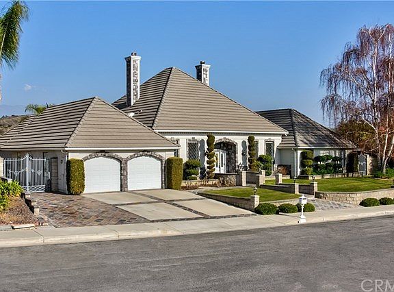 Rarely does an opportunity to own a beautiful single story estate behind the prestigious gates of Smiley Ridge come available, until now. Enter through front door featuring alluring beveled glass and immediately be drawn to the luxuries of this spectacular home; from the well appointed chandeliers, impressive ceiling heights, opulent fireplace, crown moldings and window casing found throughout the property you will know you've found your home! Step into the open kitchen with professional grade Viking appliances, pull outs in all the lower cabinets, custom attached breakfast bar seating and a built in kitchen table you'll be ready to whip up a great meal and entertain all at once! Down the hall find the spacious family room and office both with gorgeous built-ins,direct backyard access, and an impeccably redesigned bathroom. The beauty of the laundry room will make you forget that you're even doing a chore while giving you an abundance of storage and crafting space. Out back find entertaining a breeze with a sparkling pool/spa,covered patio, striking concrete tables and breathtaking views of the canyons and local mountains. Find rest in one of three bedrooms all with large walk in closets or retreat to your huge private master suite complete with sitting room, expansive closet, and marvelous master bath with jetted tub and steam shower. With the wonderful curb appeal and luxuries around every corner don't hesitate to make this estate your own today!