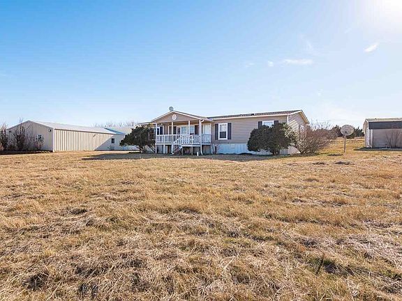 If you have dreams of operating your business on your property, and wanting the wonderful country life, this is the property for you!! Don't miss this unique opportunity with unlimited potential! Located on 10 acres is a move in ready manufactured home that is 3 bed and 2 bath, but it also has a large outbuilding that has boundless opportunities. It is fitted with phase 3 wiring, security system, heated/cooled, and multiple offices. The second outbuilding has been used as storage/office space, and it is also heated/cooled. All of the buildings are located on the first 4 acres of the property, along with the storm shelter. Behind the buildings and home is beautiful land waiting to be discovered! If you are wanting more space for a hobby or other interests come take a look! This property is selling As/Is, and the utilities are turned off. Call today to go on a walk to see if this property can be what you have been waiting for!