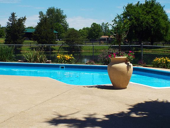 PENDING CONTRACT - Call 502-314-5933 for an appointment to see this first time on the market custom 5+ acre 3650 sq. ft. finished walkout home, 5 br. 3 full baths, Park like setting with 1 ½ acre fully stocked pond with gazebo and floating boathouse, 18x41 Lazy L in heated in ground swimming pool and small pool building. Creak rock pillars with 4 board black plank fencing around property that is ready for horses. 25x40 tool shed that could easily be turned into a horse barn, 30x54 pole barn with 16 ft. garage door & duel sliding doors on rear, over sized 28x28 attached garage, Great room with Brazilian walnut hardwood floors & beamed cathedral ceiling and gas creak rock fireplace with round hearth, Tile kitchen with Oak cabinets and island with granite counter tops, All stainless steal LG appliances and resessed lighting, Trayed ceiling master bedroom with custom tiled master bath, and frameless walk in shower and new marble counter & Ikea cabinet system in master closet. Barn lumber finished French door walkout basement with heart shaped aggregate patio, Custom barn wood bar, and Steepleton pool table, Absolutely gorgeous newly added 12x26 sunroom overlooking lake and pool with creak rock fireplace with genuine pine mantle, wood burning fireplace insert, laminate flooring, and energy efficient Mitsubishi split heating/air system for add on. Many more extras with custom beauty.