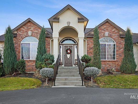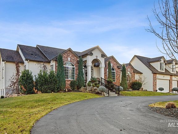 Owner will carry this 2.4-acre property located in Eagle, Idaho. The property includes two irrigated pastures, a 250x100 ft riding arena, and mature trees. It features fruit trees such as apple, pear, and peach, along with mature grapevines. A concrete garden area is also available for planting. This 5200 sqft spacious home, offers 6 bedrooms, 4 bathrooms, an office, and a sitting area. The kitchen was fully remodeled in 2023 with new granite countertops, cabinets, and stainless-steel appliances. The home features hardwood floors, ample storage, and a bonus room. A wrap-around porch provides scenic views, while the backyard includes an in-ground pool, spa, and firepit. The 3500 sqft shop bay boasts two large automatic roll-up doors and a studio in-law suite with a kitchenette and bathroom. Additionally, the shop is equipped with a walk-in cooler, offering versatile space for various needs.