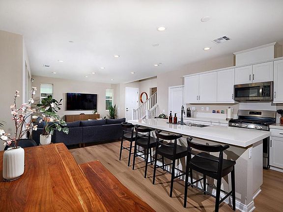 Stunning and immaculate 4 BR, 3 BA home features a light, bright and open floorplan. The entry-level bedroom and bathroom are perfect for guests. The modern kitchen features quartzite counters, a large center island, stainless steel appliances plus a refrigerator. Great dining space with a large sliding door leading to the backyard. The primary bedroom is your very own sanctuary with ensuite bathroom, dual sinks, a large soaking tub, separate shower and a walk-in closet. In the upstairs hallway you will find a built-in desk and storage cabinets, great for a quiet work-from-home station. Convenient second floor laundry room with cabinets. Other upgrades include Luxury Vinyl Plank flooring throughout main living areas, window treatments, owned Solar, and the 2-car attached garage with an electric vehicle charging station. The low-maintenance backyard featuring a patio and turf grass is perfect for relaxing with furry friends or entertaining family and friends. Future amenities a pool, dog park, playground, an amphitheater, tons of grassy areas and more! Minutes to great schools, parks, shopping centers and easy freeway access. Whether you're hosting a dinner party or simply enjoying a quiet night, this home has everything you need to live a wonderful life at the heart of Cota Vera in Chula Vista.