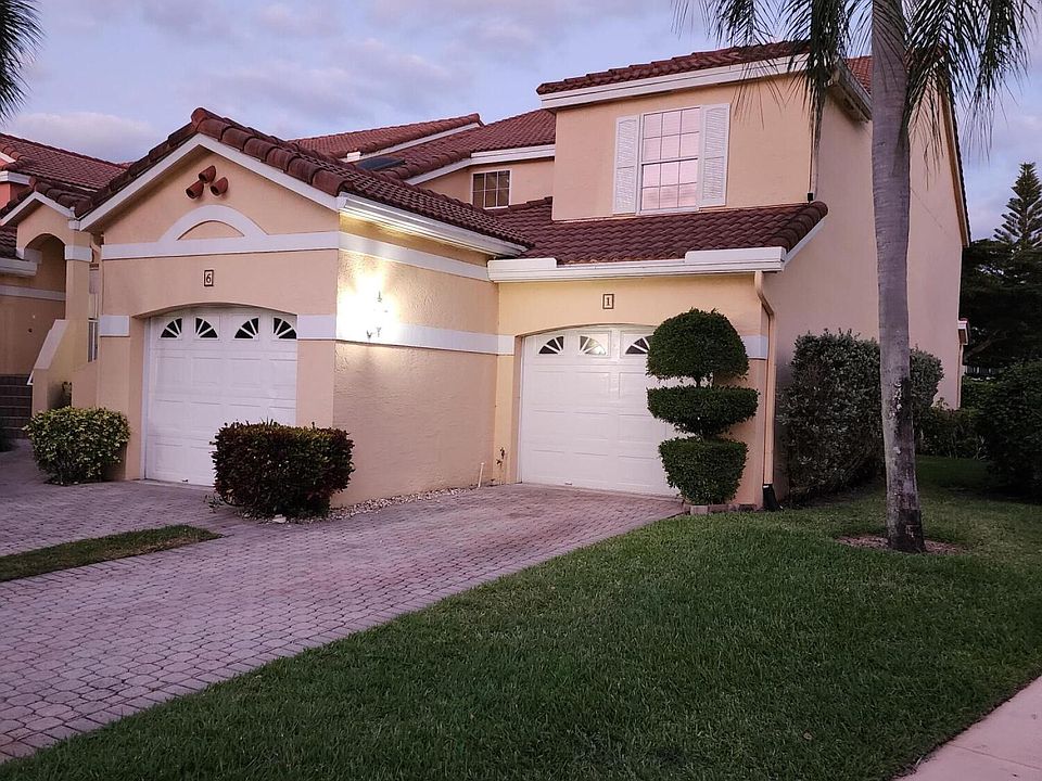 First floor unit in gated community. No country club membership required. Saturnia marble floors throughout and in both bathrooms. Updated bathrooms and kitchen. Private screened patio and grilling allowed outside your patio on 1st floor. Steps to the pool. Third bedroom has doorway removed and is used as a den/office. Private 1 car garage and driveway which can accommodate 2 vehicles. Only community in Boca Country Club that is 100% funded. INVESTORS CHECK WITH REALTOR OR OWNER