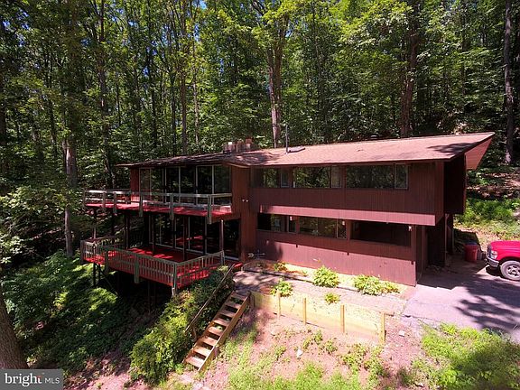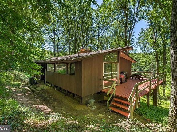 PLEASANT VALLEY FARMS - Get refreshed! Relish the enduring lifestyle choice in this coveted Monkton locale on 30+ acres. Stunning Acorn Co. Deck House elevates your daily existence with mid-century modern and rustic Monkton. Well curated use of elemental glass, wood & beams and open spaces to connect with natures beauty. Immersed in natural light, walls of glass open to soothing outdoor living, expansive decks, glistening pond views and meadows. Modern, gourmet kitchen overlooking natural rock formations will provide true inspiration. Glistening oak and cherry hardwood floors, contemporary open tread stairway, spacious great room warmed by brick fireplace, large master suite with renovated master bath overlooking nature. Stroll the wooded path to your private spring fed pond and sun on the rustic dock. Animals welcome too as the three stall barn with electric and water, sand riding ring, five pastures provide the optimal settling for horse lovers. Additional board & baton barn and corn crib with standing metal roof (15? clearance) offer room for additional stalls, equipment and toys. All in the sought after Hereford Zone! Subject to MET Easement.