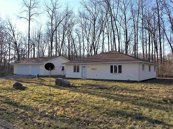 Immedate possession available with this remodeled 2 bedroom 1.5 bath vinyl sided ranch with detached 3 car garage in a rural lake area setting southwest of Plymouth. Open floor plan offers large living room with brick fireplace (with electric insert) that is open to the dining area and kitchen (with bay window and appliance package), family room with glass slider leading to the 12x21 rear deck with wooded views. Main bath has a whirlpool tub, separate shower and dual sinks. Split BR arrangement with corner windows giving nature views. Amenities include: fresh interior paint, new floor coverings, new Pex plumbing, new light fixtures, GFA furnace, central AC, 200 amp breaker box, NIPSCO gas, REMC electric. The 30x36 detached garage (built in 1998) has a concrete floor, 100 amp breaker box and two overhead doors (with auto openers). Brand new septic system just installed (completed 6-8-2020). Secluded low traffic area just minutes from town.
