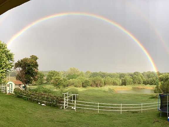 Set beautifully on corner lot hillside over looking stocked pond & pasture. Garage converted to 3 new bedrooms. New 22' x 28' metal shop with electric. 7' x 22' in ground shelter Updates thru-out of this 7 bd,2 ba home. The great rm has lg picture window to view the wildlife & corner fp. Open kitchen & frml dining. Remodeled hall bath-New carpet thru-out.