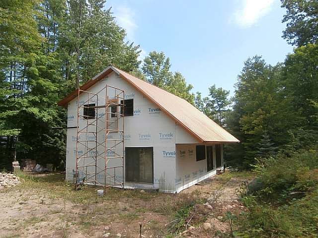 Great opportunity for you to add your finishing touch! This work in progress has a drilled well, conventional septic, electric on site and studded for 2 bedroom plus loft. Patio doors to deck. Exterior unfinished. Lower level is currently being used as living space with full bath. A short stroll down the road will lead you to the deeded access on full rec Chain Lake.