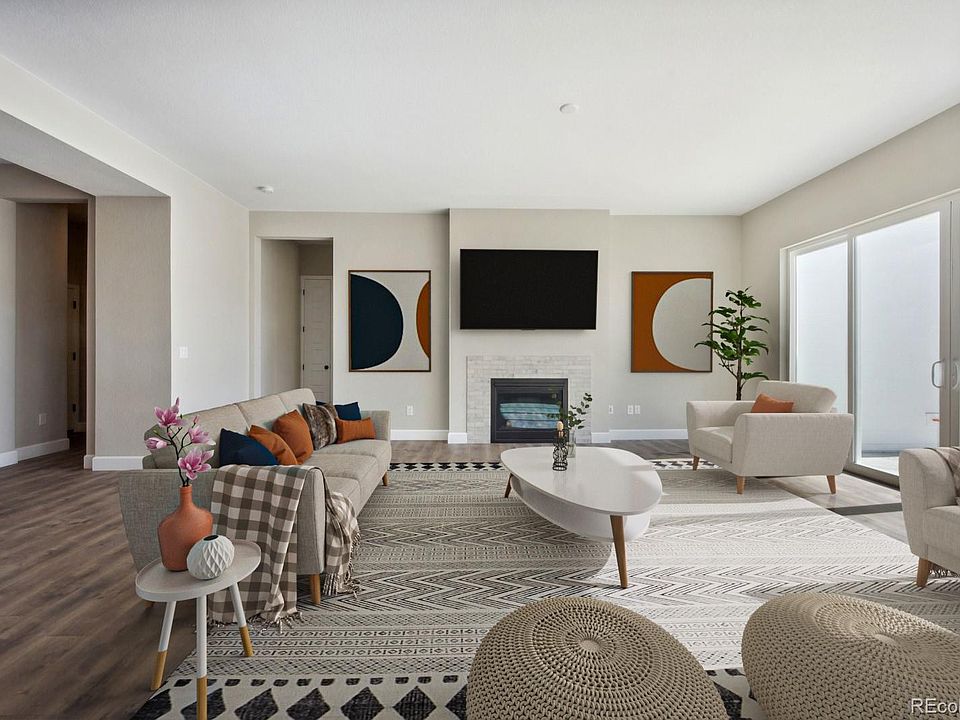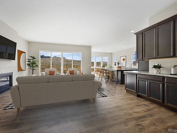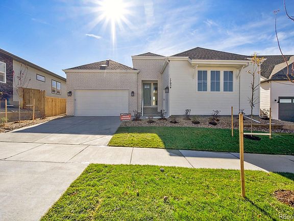 Elegant simplicity is showcased in this new + modern ranch home with numerous upgrades. Step into the inviting foyer with tall ceilings and rich colors that draw you in. Illuminated by an abundance of natural light, the open-concept great room is the heart of the home and invites the outdoors in with a wall of sliding glass doors. The striking gourmet kitchen boasts a grand island, espresso wood cabinetry, osprey white granite countertops, gas stove, stainless steel appliances, double oven, and an impressive walk-in pantry. The sun-filled dining room is well-appointed & the perfect space for gathering around the table for evening dinners. As you enter the impressive main-floor primary suite, you'll be greeted by a spacious bedroom & luxurious five-piece bathroom. Two more large bedrooms and a Jack-and-Jill bathroom complete the main level living. Descend into the finished basement with 9' tall ceilings where your day-to-day living will be enhanced. The massive family room allows for endless possibilities of a media area, rec/game area, work out space, and more. Complete with two additional bedrooms, full bath, and storage space galore, this is the ultimate lower level to relax & unwind. Extend your living to the outdoors on the cozy patio and private yard backing to open space. With a 3-car garage, situated in an idyllic community with resort style amenities & trails, this turn-key home is your perfect retreat.
