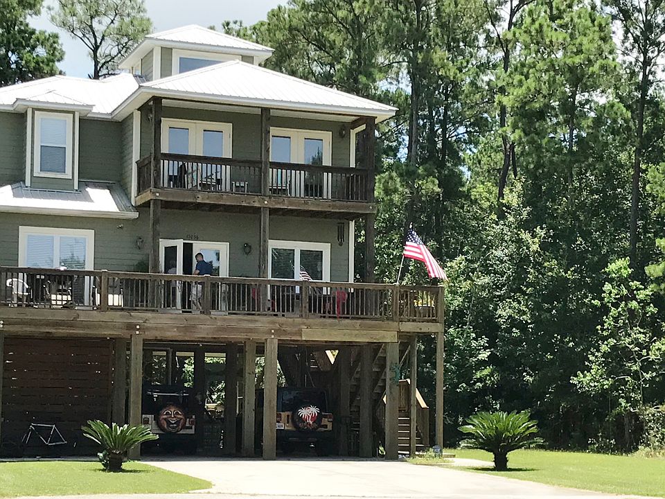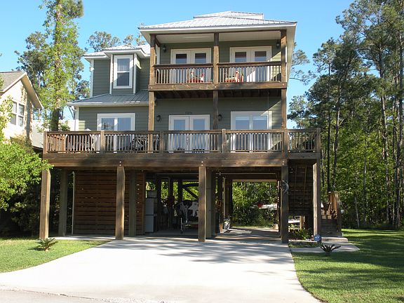 This is a custom built home finished in 2008 with over 2,500 s. ft. of living and deck space featuring high ceilings, crown moldings, large custom tile flooring with carpet in the bedrooms.. Four large bedrooms and three full bathrooms with an extra coffee/observation room. One of the master suites has a custom tile spa shower, dual vanities, large walk-in closet with two sets of double doors leading to the second floor large covered deck. The home has beautiful views of the Bon Secour River being located in the small subdivision of River Pines which is located on the banks of the river off County Road 6. This home is built to current hurricane standards including impact resistant windows and doors, fireproof cement siding, metal roof, double strapping, stainless bolts and over sized 10" piers. Two high efficiency HVAC split systems to keep each floor independently climate controlled. The gorgeous views can be seen from most rooms and are spectacular from the two covered patios and over 400 sq. ft. of deck. The kitchen features stainless high end appliances, easy close drawers and doors and granite counter tops. The house sits on a large raised lot and provides a workshop and parking for up to 6 vehicles under the structure as well as an RV electrical hookup. The community boat dock is just steps away with several slips, electricity, water, lights, a kayak platform and a fish cleaning station. We are located on a quiet cul-de-sac close to shopping, 10 minutes to the beach by car and 5 minutes to the ICW or Mobile Bay by boat. Sold partially furnished!