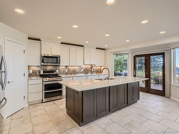 INCREDIBLE VIEWS! One of the premier lots in the highly sought after West Woods neighborhood, with views of downtown Denver, Front Range, and North Table Mountain. Highest point in West Woods on the 5th hole of the West Woods Golf Course. Beautifully remodeled kitchen, with rich dark hardwood floors, that is perfect for entertaining. 3-car tandem garage. New carpet and paint. Flat lot with big yard. Open floor plan with finished basement. Loft can be converted to a bedroom. Hot tub concrete pad to enjoy the view. Award winning Jefferson County School District. Seller related to listing agent.