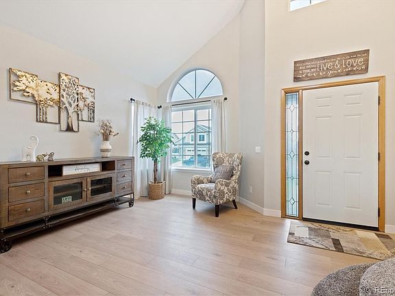 Move in ready two story boasts a newly updated kitchen and recent bathroom updates! Seconds after crossing the threshold, don't be surprised if you decide that this is the one. Wide-plank vinyl floors are both beautiful and durable, extending from the entry into the living areas and kitchen. The interior designer of the household will appreciate the natural light and free rein presented by the neutral palette of the current decor. The bright kitchen features brand new shaker style cabinets with roll out shelves in the pantry cabinet and handsome farmhouse sink. You'll love the delicious concoction of quartz counters and stainless steel appliances, ready to follow your culinary directions. The gas fireplace has been refreshed with new colored glass inside and imparts a cozy feel to the family room, creating a great spot entertaining family and friends. Your outdoor furniture transforms the stamped concrete patio into an open-air lounge, where you can enjoy starry nightcaps after successful days. Updated powder bath is discretely located near the basement access just steps away from the entrance to the two car garage. The primary bedroom offers the luxury of tranquility as the days begin. In addition to the convenience of the private bathroom with stylish walk-in shower, you will find a newer vanity with dual sinks and ample closet space to let your wardrobe breathe. The other 2 bedrooms are ready for your decorative touch and look out over the backyard for enhanced privacy. The unfinished basement also presents a menu of conversion choices, whether you have in mind a rec room, guest room, studio, or a secluded home office. Other details include newer carpet and pad at the upper level, upgraded lighting, new sliding glass door and new privacy fence. Located in the Douglas County School District in a pool community, near shopping and dining. Convenient to parks, schools, Cherry Creek Trial and everything that downtown Parker has to offer.