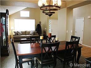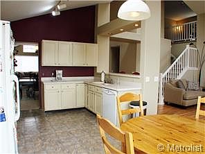 This beautiful home is move-in ready. The stunning vaulted living and dining room will make the perfect place to entertain guests. No telling what you'll cook up in the spacious eat-in kitchen with corian counters, double ovens and tons of cabinet space. The family room is anchored by a 2-story brick fireplace, skylights and gorgeous hardwood floors. The relaxing main floor master suite offers 5-piece bath and huge walk-in closet. There are two additional bedrooms upstairs and a loft area. The walkout finished basement features a bedroom, bath, great room with wet bar and storage. Enjoy summer dinners on your huge maintenance-free deck with fabulous views. Other features include: fresh paint, new carpet, fenced backyard with water feature, quiet location, beautiful views and more! Walking distance to the neighborhood park and pool!