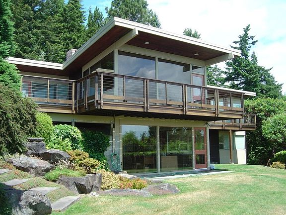 Fabulous custom design by Benjamin MacAdoo (first African American architect in WA) and built mid-century style. Fully finished lower level (except storage/laundry area). 5 bedrooms, 3 down. Outstanding kitchen w/ rift oak cabinets, Shoji screens over bar (and at entrance), corion and granite counter tops. Decks are IPE brazilian hardwood and cedar w/steel cable fencing. Beautiful Sound, Mt. Rainier and territorial views. Very private location at the end of 16th Avenue SW. SELLER OWNS THE EASEMENT as part of Lot 26.