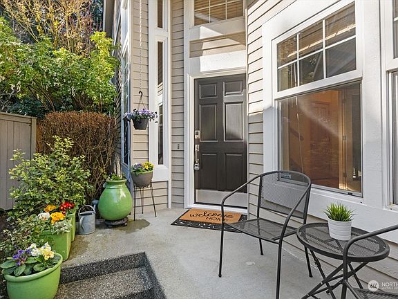 Beautiful townhome in serene Belvedere Place! Bed and full bath on main floor with no step access to home though garage. Enter the front door to soaring vaulted ceilings with lots of natural light from tall windows and skylights. Hardwood floors, new carpet throughout and A/C! Updated kitchen with granite counters, tile backsplash, stainless appliances with lots of cabinets. Upstairs freshly painted Primary bedroom has vaulted ceilings, 2 walk in closets, and renovated ensuite with stone floors, granite counters, new cabinets, lights and walk in shower. Second upstairs bedroom also has ensuite bathroom, fresh paint. Relax or entertain on your composite deck with peaceful garden. New garage door, opener, lots of built in storage.