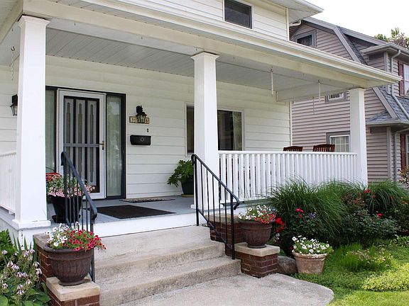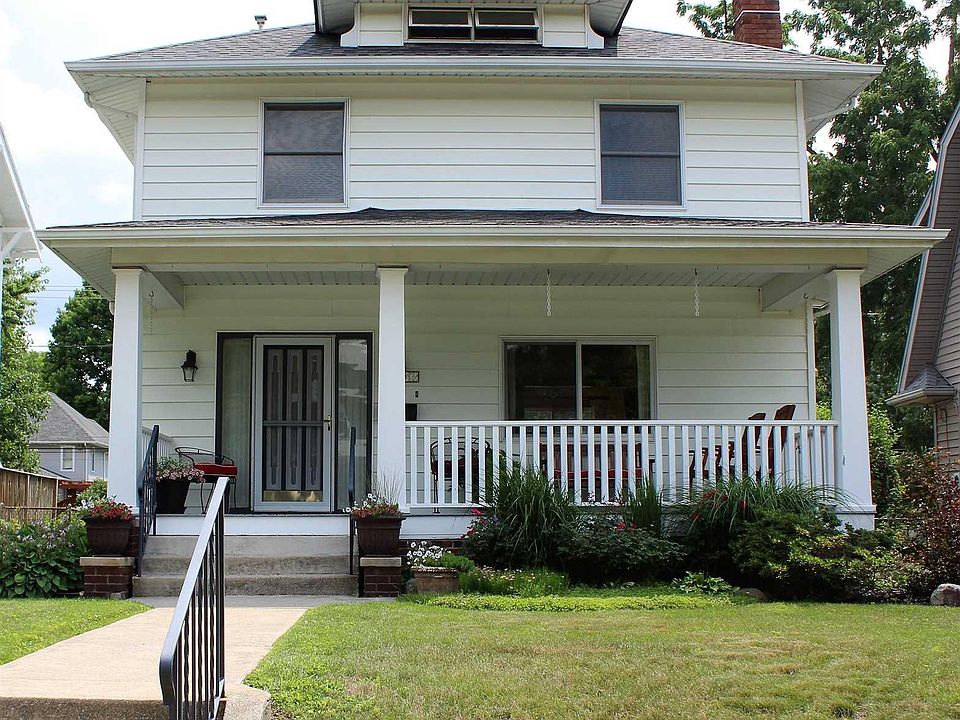 Beautifully maintained and updated 4 bedroom home. Just one block from Lakeside Park. Same family has owned the home for years. Wonderful 8x24 covered front porch welcomes you to the large living room with wood burning fireplace. Big Andersen windows bring a great deal of light into this home. Gorgeous natural oak woodwork and low maintenance laminate flooring in the living and dining rooms. Renovated kitchen features white painted cabinetry and granite countertops with breakfast bar. Handy half bath and eat-in kitchen open up to the deck fenced yard and 2 car garage with loft for storage. Low maintenance vinyl siding with vinyl soffit and aluminum facia. Brick fireplace has been renovated with new flu, cap and damper. Many updates including; a new water heater in 2020, A/C in 2019, furnace in 2015 and roof in 2008. Electrical updated with new 200 amp circuit breaker with whole house surge protector. Both sewer line and copper water line were also replaced. Come take a look at this one!