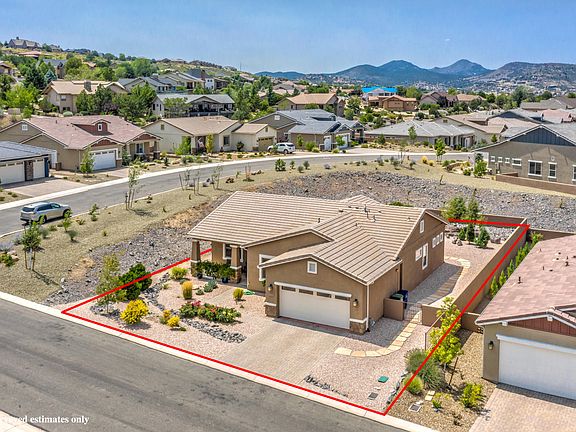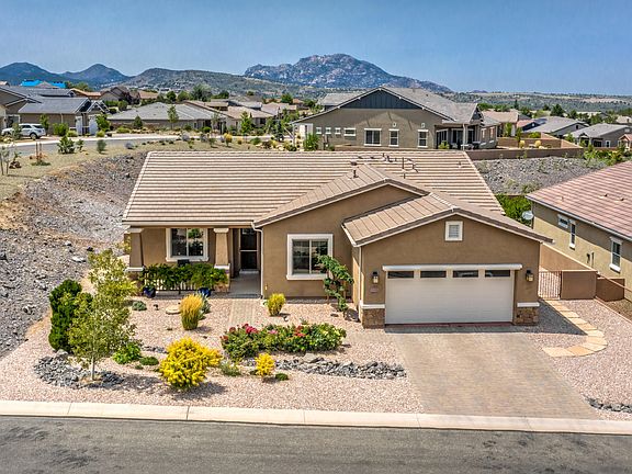 In Pinnacle Views of Prescott Lakes - The 2016 Calistoga Dorn Home featuring 2 Bedrooms [Master & Ensuite] spacious Den or office all on one level with a spacious property fully enclosed back yard. Beautifully landscaped corner lot w/common area on 2 sides and wonderful outdoor landscape. Relax on the back covered patio and capture the stunning Arizona sunsets and spectacular views of Granite Mtn. The custom-made accent walls & special features are found throughout the home, including 2 sets of custom barn doors, classy closet in Owner's suite. The details in the laundry room w/rustic built-in upper cabinets, counter and lower storage and unique utility sink. The garage is finished with epoxy flooring and plenty of storage. This home is fully upgraded with timeless finishes.