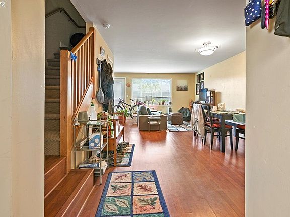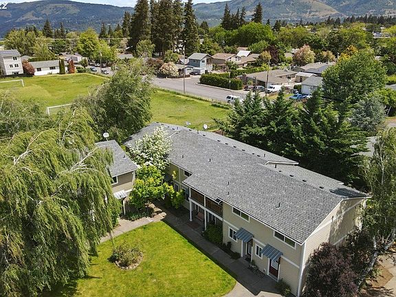 Meticulously maintained end unit in Mt. View Condominiums. One of only 2 condominiums with a private yard space adjacent to the patio. A great opportunity to own in Hood River. Enjoy Mt. Adams and territorial views from the side yard. This 2 story 2 bed 1.5 bath features a modern kitchen with stainless steel appliances and pine cabinetry. Close to the Indian Creek Trail, the Heights, and schools.