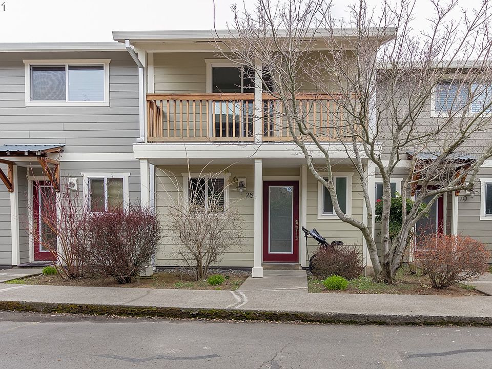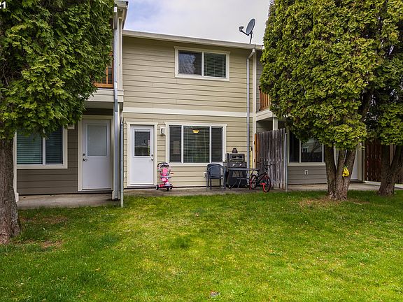 Stylish, affordable Hood River condo! Open-concept living room w/ laminate floor, ground-level patio & shady common area. Convenient half bath on the main level. Efficient kitchen upgraded to stainless steel appliances. Upstairs master bedroom w/ deck & clever laundry closet. Pleasant views from 2nd bedroom. Full bath upstairs w/ tile shower surround. Low monthly HOA covers water, sewer, garbage, exterior maintenance/insurance, landscaping & snow removal. All appliances included! See Video tour.