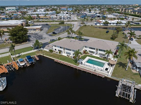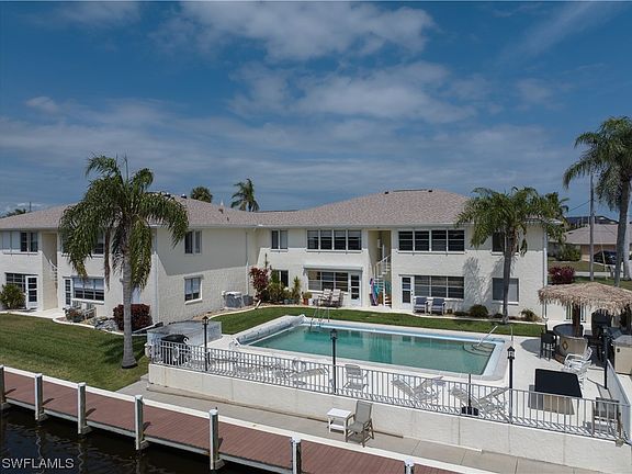 Located in the heart of all the fun activities, you can easily walk to downtown Cape Coral, restaurants, and shops. The complex has a new roof as of 2023 and offers a lovely community pool with a tiki hut and grill, perfect for entertaining. Boat slips are available on a first-come, first-serve basis, with the waiting list expected to open up shortly. The unit was repiped in 2013, fitted with a new hot water heater in 2023, and equipped with a new AC in 2021, ensuring your comfort and peace of mind. Additionally, hurricane shutters are in place for added security. Move right in and start enjoying the Florida lifestyle—everything is done and ready for you!