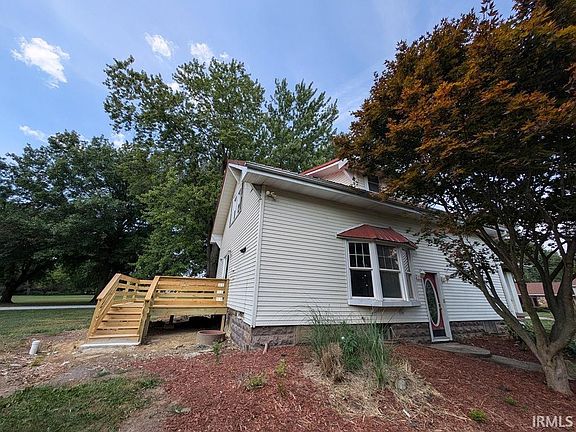 Farm house style 1 1/2 story home over basement. This property has had some updates, including new rear deck, carpet, vinyl and other improvements. It has a large corner lot, and features an especially large garage, which has room for cars with ample workshop space. Convenient to highway 63 and just minutes into Terre Haute.
