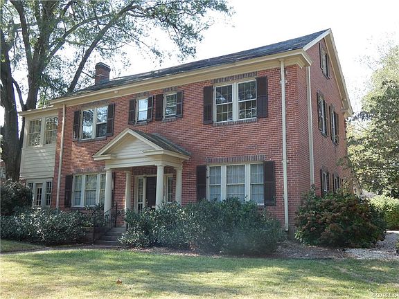 STATELY ALL BRICK COLONIAL c. 1923 in WALNUT HILL! Character and charm exudes from this classic Colonial with its hardwood floors, intricate moldings, mantels and woodwork, gorgeous staircase, massive entrance foyer, formal rooms, and ample screened porch with slate floor. The kitchen is huge with loads of cabinets, counters, and island and is connected to a later addition family room with fireplace, cathedral ceiling, and skylight. Beyond a secret door in the living room lies a mancave(or woman cave) with wet bar...and a second "cave" is the walk up attic equipped with a professional pool table which stays with the house! Also in the attic is a finished "kids" playroom! The basement has been recently waterproofed and would make a great workshop and there is a brick 2 car garage. The home is heated by glorious gas hot water(radiator) and cooled by dual zone air conditioning. All this and only 7 minutes to Fort Lee and 25 minutes to downtown Richmond!