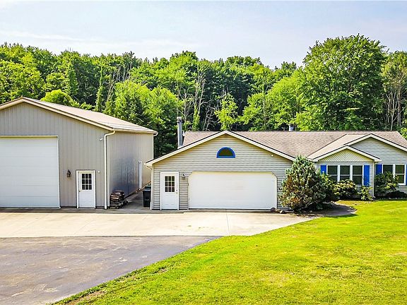 Ready, Set, GO!! Here is a classic ranch home on almost 3 lovely acres in Austinburg Twp. Minutes from I-90. This property features a great room (kitchen, dining, living Combo), Fireplace. The kitchen is the heart of the home, newer counter tops, appliances that stay include dishwasher, fridge and stove. Everything is on 1st floor. 3 beds, 2.5 baths. Owner's Suite has large closet w/organizer, gracious sized bath with room for a soaker tub, glass enclosed tiled shower, dual sinks, french doors leading to patio overlooking stone water feature. There was a Family Room Addition added with tray ceiling and doors leading to side patio. 2 car garage is attached (24x30) with extra storage, attic space above, opener. The 30x50 Outbuilding offers heat, electric, car lift, 14' door off the front and 10' door off the back. Office ready for your home business. Center Creek runs through the back woods. Check it out!