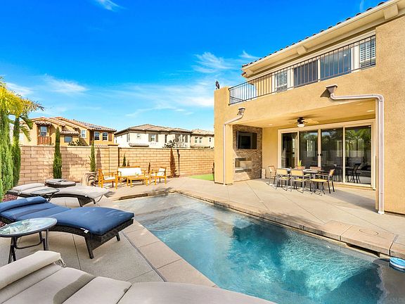 Unlike anything you have seen yet. Experience luxury living in this stunning Estancia plan 2, 4 bed plus attached studio/casita, 4.5-bath home in highly desired Montecito Village. The private in-law quarters/casita is perfect for income generating or multi-generational living. An additional full bed/bath on ground level and upstairs loft is perfect as home office/play room. The gourmet kitchen boasts solid-quartz slab countertops, designer-selected cabinetry, and premium appliances. Adjacent to the kitchen is a flex room perfect as a hobby room or entertain in your own at home bar. Beautifully upgraded with model like finishes throughout, designer tile, elevated lighting fixtures, plantation shutters, neutral paint & flooring. Escape to your primary bedroom retreat with a spa-like bath, vanity, dual sinks, and two walk-in closets. Enjoy your sunrise coffee from your bedroom on the over sized balcony off your suite. The home includes energy-efficient features like high-performance windows, LED recessed lighting, insulated garage doors, solar panels, water softener, alkaline filtration, upgraded tankless water heater and EVCS. ***Rare to find, large corner oversized lot, with custom hardscape, sparkling private spool (has 5 jets with a Baja shelf to be used as an oversized jacuzzi or pool) and fenced side turfed yard for pets & play. Take advantage of the Otay Ranch amenities, including parks, trails, and a resort-style club with basketball courts, pools and gym. Conveniently located near shopping, dining, and top-rated schools. Don’t miss this incredible opportunity!