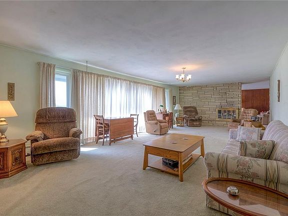 This ranch home sits on 1/2 acre lot & Atchison Elementary School is located directly behind property with ball fields. Atchison Golf Club Bellevue is across the street just West a few 100 yards. All limestone exterior siding with limestone chimney. Half circle drive with double car garage entry on the backside of home which is at basement level. Seller has easily stored a boat inside but whatever else you may want to keep covered inside fits with the addition of vehicles. Walk-out unfinished basement which includes a fireplace. The main level has 4 bedrooms, 3 full bathrooms, huge closets in each bedroom, plus a cedar closet in hall. Laundry room next to kitchen (washer & dryer stay) There are also wash\dryer hookup in the basement. Kitchen includes a gas burning stove, in-door grill & 2nd kitchen sink. 2 main floor living rooms that share 2-way gas fireplace with large windows overlooking backyard. Master bedroom has full bath plus a vanity with 2nd sink. Bedroom #2 has its own attached full bath. Bedroom #3 has built-in desk with shelves. Home does need some updates and the boiler system doesn't work. Seller has bids to convert boiler system to new forced air heating system. Living Room ceiling has some peeled sheetrock above fireplace. This was a previous leak that was fixed with roof, just cosmetic damage that needs repair.