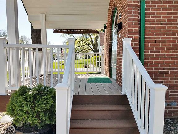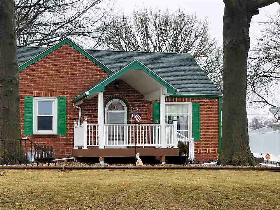REASONABLY PRICED for you ... this cute all brick 2BR has many new improvements including the new covered front porch where you can watch the world go by. Galley kitchen & bath has new vinyl including new carpeting in the basement rec room, hall and stairway. Gas range, newer refrigerator, gas heater in family room, all ceiling fans & all window treatments to stay. Jacuzzi brand soaker tub in main bath & shower in basement. Located near library & grocery store. Two car detached garage. BE SURE TO SEE!