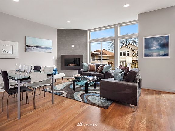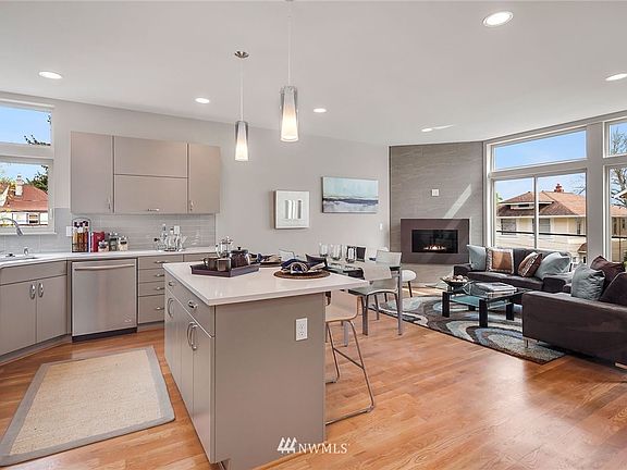 New modern in prime Capitol Hill location with Southern exposure. Leading edge architecture with open concept, walls of glass, tons of light. Gorgeous designer finishes, rich hardwoods, custom tile, sleek fireplace, floating staircase. Gourmet kitchen with quartz counters & island, high end cabinets and finishes. Top floor master with spa bath and private balcony. Huge roof top deck with stunning views, off street parking included. Walk score: 90, Transit score: 70 and bike score: 80