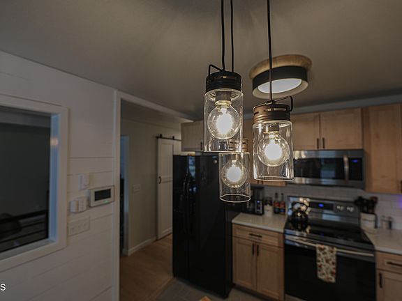 Welcome to this updated home in south Bismarck with three sizable bedrooms on the main floor! The main living area has been transformed from its original charm with contemporary updates, offering a timeless yet refreshed ambiance. The large living room has a big window and is adorned with an accent wall. The kitchen features new natural maple cabinetry, tasteful combination of stainless steel + black appliances, complementary tile floor, pantry, and an island with a butcher block countertop. The dining area has a large window, allowing great lighting. Off the main living space is a hallway leading to the rest of the main floor. The beautifully updated bathroom has a linen closet, dual sinks, and a stunning white tile shower. The cozy laundry area has a countertop, making folding clothes a breeze. Last but not least, there are three bedrooms on the main! Making your way downstairs you'll notice the black, modern railing that leads to the large family room with two egress windows and a beautiful mantel taking center stage. Off the family room is a bedroom with an egress window, spacious and updated ¾ bathroom with a linen closet, and an unfinished room, currently used as a workout room. Finishing out the basement is a large mechanical/furnace room with additional storage and a radon mitigation system, scheduled to be installed in the next week. The attached, insulated garage measures 24x24 for 576 SQFT and provides access to the backyard. The backyard is fully fenced, has a shed, and has large, beautiful trees. The patio/deck area has a pergola and wired for a hot tub. The home has seamless steel siding. There have been so many updates to this home, you need to see it to take it all in.