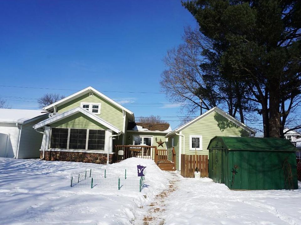 Why rent when you can own this cute & cozy 2BR/2BA starter home! Enjoy great curb appeal with fresh exterior paint (2017), large yard and stylish new garage door on single car detached with garage door opener and asphalt driveway. Light filled eat-in kitchen provides nice cabinetry, easy to maintain linoleum flooring and patio door to the big deck! Appliances consist of the range, dishwasher, refrigerator and microwave. Living room features newer laminate wood flooring and lighted ceiling fan. Relax on the porch/3 Season room! Upper level is home to the remodeled Owner's suite w/bedroom, full bath w/clawfoot tub and a bonus room! Also find a main floor bedroom, 3/4 bath, laundry with included washer & dryer. Wood exterior; new roof - 2003; natural gas furnace; central air; off street parking in front & alley in back; new sheetrock & electrical in upper bedroom; fresh paint throughout; new basement carbon straps come with Lifetime Warranty transferred to buyer; yard shed; 936 finished square feet. Average electric/natural gas -$150/mo. Convenient East Hill location!