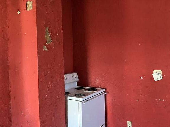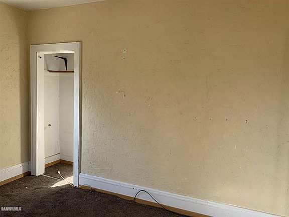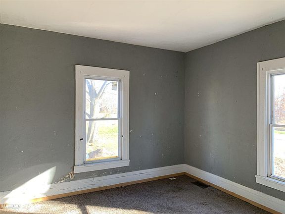 Enter the home into the living room with the first bedroom off. Living room and kitchen/dining area divided with decorative pillars. Full bath is located off the kitchen. Through the kitchen you will find the second bedroom with covered door in floor to basement. At the back of the home you will find the laundry room. Needs some TLC! Property that is being sold "as is where is"