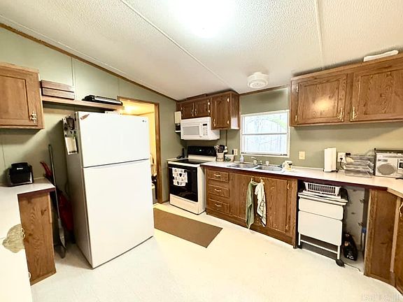 Three-bedroom, two-bath double wide manufactured home offers a spacious 1,440 square feet of comfortable living space, situated on a generous 5.4-acre. The exterior features a welcoming deck and porch, perfect for enjoying the serene surroundings and views of the natural landscape. Inside, the layout is designed for both functionality and comfort. The open-concept living area seamlessly connects the living room, dining space, and kitchen, making it ideal for family gatherings and entertaining guests. The kitchen is equipped with modern appliances and ample counter space, perfect for cooking and meal prep as well as a new dishwasher in the box ready to install. The master suite includes an en-suite bathroom for added privacy, while the additional bedrooms share a well-appointed second bathroom. Outside, the property is a true haven for hobbyists and those who enjoy rural living. A sizable shop provides plenty of space for projects, storage, or even a workspace. The chicken house is perfect for those interested in raising chickens for fresh eggs or simply enjoying the beauty of nature. This all-electric home combines modern conveniences with the tranquility of country living.