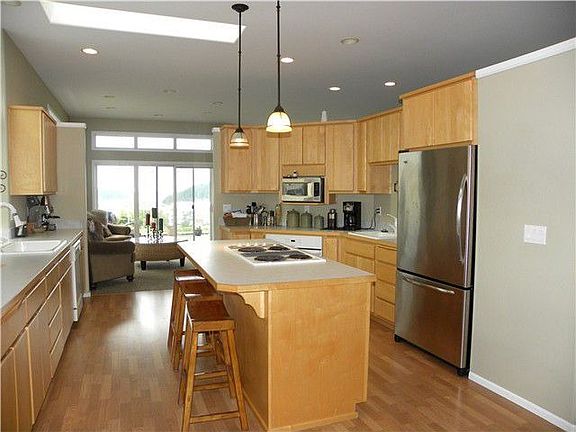 Views of Burrows Bay, Olympics & Marina. Open floor plan w/4 bedrooms 3 baths, 2,436 sf. Wonderful living space upstairs with large kitchen, dining room, formal living room w/gas fireplace & two large bedrooms with 2 full size baths. Downstairs are two more bedrooms, a second family room with fireplace, wet bar & a full bath. With large decks there is plenty of room for entertaining. There is an over sized 2 car garage & RV parking to complete the package. Full Skyline amenities available!