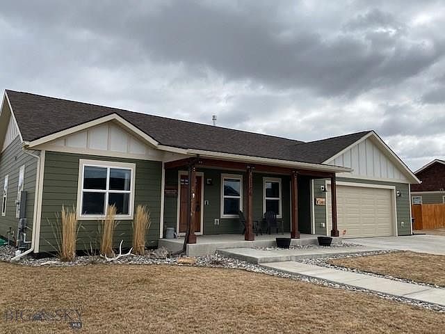 Like new single level home on a 1/4 acre. Features include tile floors, quartz countertop in kitchen with whirlpool stainless steel appliances, gas range, large pantry, hardwood floors in the open kitchen and living room area with a cozy gas fireplace. Extra reinforcement added in the wall with the fireplace to support head mounts or heavier decor. Nice, bright and spacious master suite separate from the other bedrooms with a tiled shower and double sinks. Oversized garage with a work bench area and shelving. Enjoy sitting on the covered porch taking in the beautiful views of the Bridger Mountains. Ryen Glen offers open space, parks and trails!