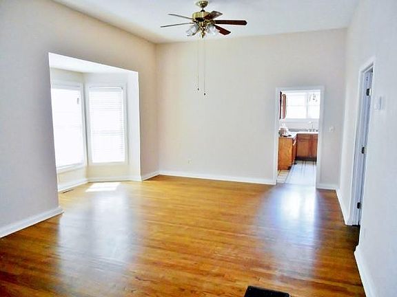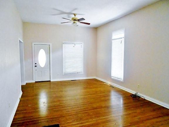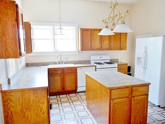 Historic remodeled and updated energy efficient 2 bedroom 2 bath all brick bungalow with large shaded front porch and over 1600 sq ft of finished living area, within walking distance to downtown Higginsville shopping. Spacious living room adjoining sitting room and formal dining room, with ceiling fans, bay window, hardwood flooring and 10 ft ceilings. Fully equipped modern kitchen with oak cabinets, center island, large pantry and gas range, microwave, dishwasher, disposal and refrigerator (with ice & water in the door) provided. Separate laundry/ mud room. Large main floor hardwood floored bedroom with ceiling fan and large walk-in closet. Open staircase from sitting room to upper level which features a carpeted 2nd bedroom/loft area with separate bath. Hi-efficiency furnace and central air conditioning and vinyl replacement thermal windows with lovely plantation blinds throughout help keep you comfortable with low utility bills. Unfinished basement, deck, patio, fenced rear yard and detached single car garage. One Year Lease with Early Release Options - SECTION 8 NOT ACCEPTED. Call for more details or to schedule an appointment to see inside.....