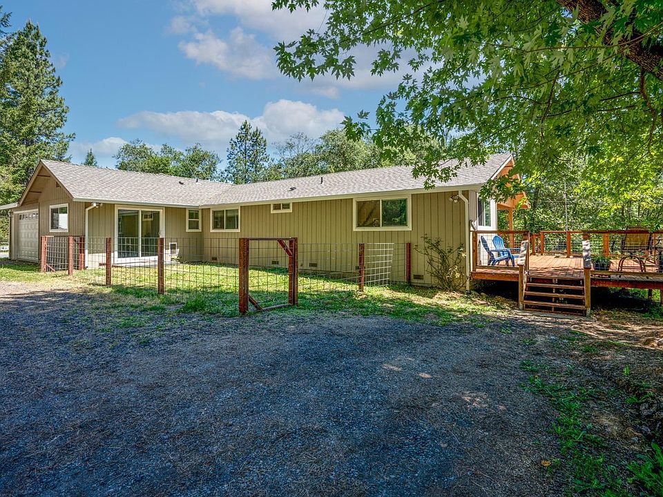 Discover comfort and convenience in this charming 3-bedroom, 2-bathroom home nestled on a sprawling 1.84-acre lot. This lovely home features a spacious interior spanning 1588 square feet, ensuring plenty of room to stretch out and relax. The large garage with remote entry adds a touch of ease to your daily routine, while the front redwood deck offers the perfect retreat for your morning coffee or evening stargazing. Privacy and room to breathe, yet you're just a hop and a skip away from town. Bonus: the back of the property is prepped for gardening enthusiasts, complete with water to site. Get ready to kick back, relax, and enjoy the good life!