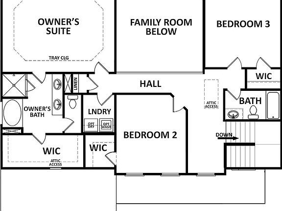 A distinctive 4 bedroom home with a formal dining room and Guest suite on the main level. The grand 2-story family room has an optional fireplace and is open to the kitchen and breakfast. Add the keeping room for an extra gathering space on the main level! Upstairs the Owner's suite features a tray ceiling, double vanity bath with separate tub and shower and large walk-in closet. This home comes with 2 additional bedrooms upstairs and a full bath. For more flexibility, this plan has the option upstairs for a media room, loft or an additional 5th bedroom and bath.
