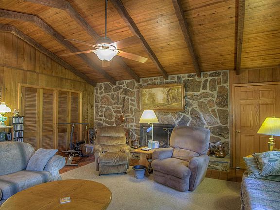 Location Location Location!!!! Home is located in a great Carthage area. This 3 bedroom 2 1/2 bath home features brick and vinyl ranch style home with 2 car garage, fenced yard, water feature, covered porch and shed with air. Partial basement has gas fireplace. Family has wood burning fireplace, beautiful wood ceiling and wood beams.