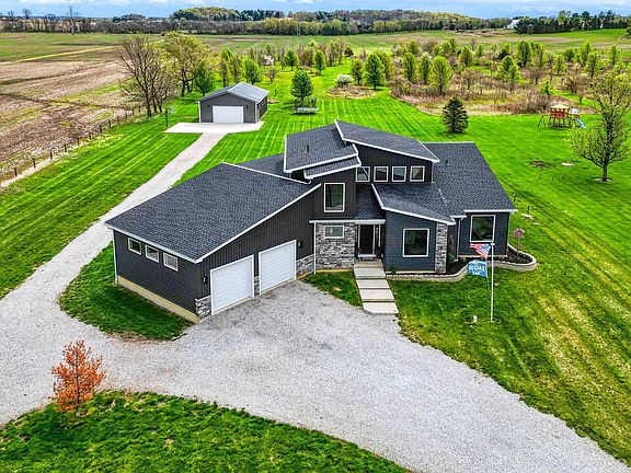 Welcome home to this AMAZING home! Situated on 3.49 acres of land, this home offers an addit'l 30x50 pole barn as well! This home is so inviting! The great rm boasts soaring ceilings, beautiful windows, stunning flooring & more! The large kitchen offers modern cabinetry, quartz countertops, a stunning island w/ quartz waterfall countertops & lots of seating! Lg eating sp w/ a built in coffee bar! FF laundry & 2 car gar! The ff owners suite offers a lg walk in closet & a gorgeous bathroom w/ walk in shower & double sinks! 3 addit'l bedrooms & full bath on the ff. Amazing loft w/ half bath! 2 more addit'l bedrooms & full bath in lower level w/ egress! Lots of space for entertainment & storage! Enjoy the beautiful patio overlooking the private backyard! This home is stunning! A must see!