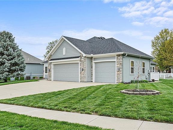 Immaculate True Ranch with a 3 Car Garage! This beautiful home was built with extra attention to detail! Large picture windows in the main living area overlook the backyard. Amazing eat-in Kitchen with multiple pull outs, a large breakfast bar, stainless appliances and lighted built-ins. Brand new LVP in the kitchen/breakfast area and both bathrooms. You'll love the study/office with built-in desk and cabinets. Primary bedroom with ensuite bathroom includes whirlpool tub and separate shower. Great laundry room just off the kitchen. Home is designed to be accessible to disabled individuals. It includes a water softener, custom blinds throughout, gorgeous lawn & landscaping, and maintenance free fence in backyard. All within walking distance to Kearney High School, brand new Pickle ball courts, and 4 mile walking trail.