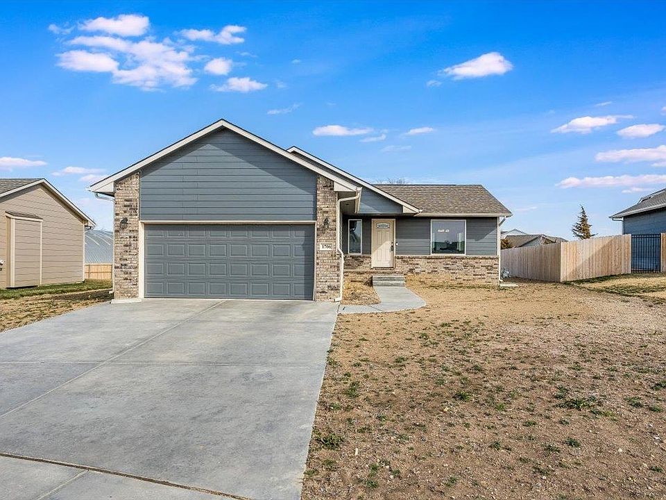 Welcome to this stunning open concept home that was built just two years ago. The kitchen, dining, and living room areas boast luxury vinyl plank flooring. Soaring, vaulted ceilings and an abundance of windows make the space feel bright and spacious. The kitchen features granite countertops, shaker-style cabinets, subway tile backsplash, stainless steel appliances, and a large kitchen island, perfect for preparing meals and entertaining guests. The master bedroom is a true retreat, featuring tall vaulted ceilings and an en-suite bathroom with a dual vanity sink, large walk-in closet, and a spacious shower. Another bedroom, full bathroom, laundry room, and two-car garage complete the main floor. This home is perfect for those who want to build equity, as the basement is already framed and ready to be finished, offering two additional bedrooms, a full bathroom, and a family room. Outside, the backyard features a concrete patio, perfect for hosting barbeques and summer gatherings. The new sprinkler system runs off of well water, which means you'll save money on your water bill! Don't miss this opportunity to own this incredible home. Schedule a showing today!