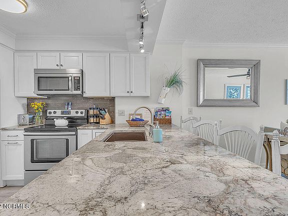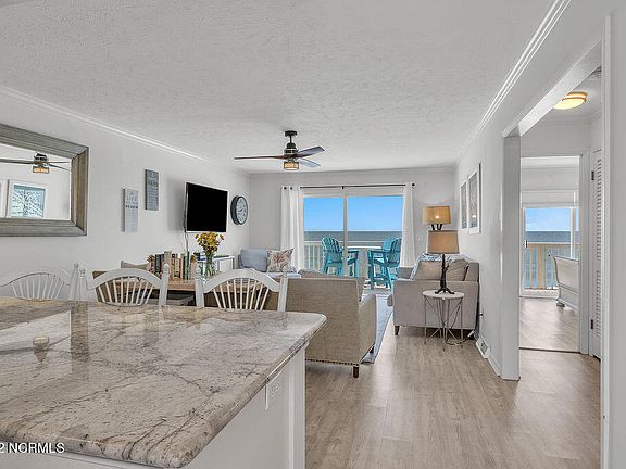 Stunning 2 bedroom, 2 bathroom ocean-front condo in the amenity-rich community of Ocean Dunes. Offered fully furnished with proven rental history, this property would make the perfect primary residence, vacation home, or investment property. Inside you will find an open concept floor plan with nearly 900 sq ft of space that has been modestly updated. The kitchen highlights granite countertops, white cabinets, stainless steel appliances, a stackable washer and dryer, and an eat-in bar for entertaining. The kitchen overlooks the bright and airy living room. Step outside the sliding glass doors onto the deck with gorgeous ocean views to enjoy a morning cup of coffee or evening glass of wine. The spacious master bedroom features an en-suite with a gorgeous tiled shower along with sliding glass door out onto the deck. There is one additional bedroom that is equipped with bunk beds and a full bed along with another full bathroom. Ocean Dunes offers a ton of amenities including beachfront access, 4 pools (one being indoor), a clubhouse, fitness center, shuffleboard, sauna, playground and more!! The HOA fee also covers water, sewer, trash, cable tv and master insurance. Located minutes from the North Carolina Aquarium, North Carolina State Historic Battleground, Fort Fisher Ferry, and all the shopping and dining at the Carolina Beach Boardwalk Don't let this one slip you by!