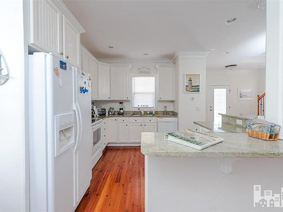 Gorgeous 4 Bedroom / 4 Bath Home in Kure Beach is a builder's home with all the special touches. Welcoming hardwood foyer leads to bright, open Living Room with gas fireplace, Breakfast Area, spacious Kitchen, and Guest Bedroom. Upstairs includes amazing landing leading to 2 bedrooms, including Master Suite. Basement level offers wonderful Rec Room with outside entrance along with fourth bedroom and full bath. On top of the beautiful indoors, the outdoors completes the package with huge front and back porches and a Crow's Nest to enjoy the surrounding views. This is the perfect beach home in which to relax with family or enjoy guests with space for everyone!NO HOA!