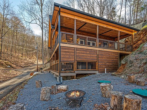 room, bar area, bunk room and accompanying theater with pool table for fun family game nights. On the main level you'll discover a fully stocked chef's kitchen open to the dining area and complete with all the amenities you need to whip up delicious meals for yourself or your guests. Dramatic cathedral ceilings compliment the open, airy feeling of the great room suitable for large family gatherings while the main floor bedroom and en suite offer high end finishes like natural slate tile surround in the shower, blown glass sink, and all natural pine clad walls. The loft area upstairs offers additional space for family and friends or to cozy up right by the electric fireplace, while the primary suite on the same level allows for privacy away from the rest of the home. Complimenting the open flow, the primary en-suite features a large, walk in slate surround shower as well as spacious walk-in closet. Not just a home, but a proven overnight rental success story, this terrific three-level home has more than enough room for 16 guests for family fun year round, Only 15 minutes to the Pigeon Forge strip and Dollywood, and less than 20 minutes from Gatlinburg while having a secluded, mountain getaway feel--truly the best of both worlds in the Smokies! Call TODAY to schedule your showing!
