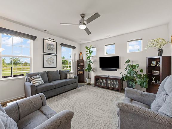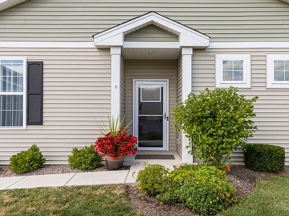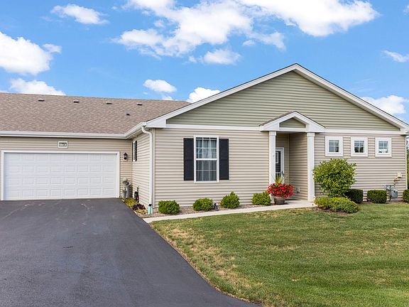 Ranch Townhome with Water Views in Carillon! Move right into this popular Chandler model townhome with private entry in the charming and highly sought-after 55+ active adult community of Carillon at Cambridge Lakes! Featuring 2 bedrooms, 2 baths, and a 2-car attached garage, this home offers open-concept living at its best. The spacious kitchen is perfect for entertaining with its oversized island, eating bar, pantry, designer cabinets with crown molding, and stainless steel appliances. The kitchen flows seamlessly into the dining and living rooms, all with stunning views. The private owner's suite includes a dual vanity bath, linen closet, seated shower, water closet, and walk-in closet. A sweet retreat with serene green space scenery. Enjoy custom upgrades including trend-current lighting, and handcrafted designer window treatments with remote-controlled, room-darkening blinds! Step outside to your upgraded extended patio with no neighbors behind you and soak in the expansive peaceful views. A rare find! Carillon at Cambridge Lakes offers a vibrant lifestyle with a clubhouse, indoor/outdoor pools, spa, fitness center, pickleball/tennis courts, walking trails, golf course, and more. Lawn care and snow removal are included, giving you more time to enjoy everything this community has to offer. Schedule your showing today-this move-in ready townhome is waiting for you!