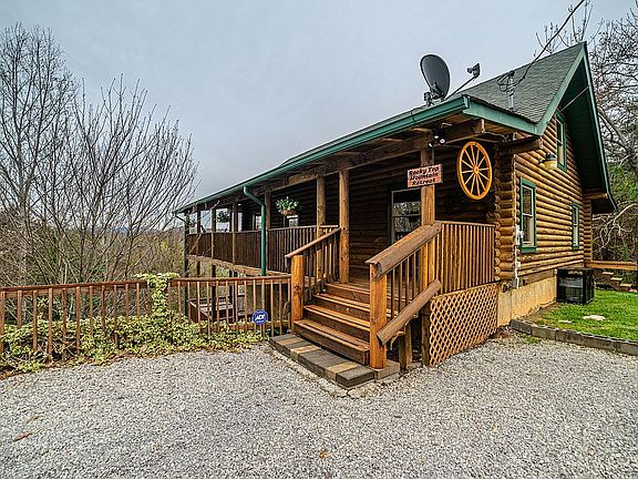 This beautiful log home offers privacy and convenience. Nestled on over 2 acres of hillside, this cabin is 1 of 2 homes on the cul de sac. It is a mere 3 miles to Dollywood and 10 minutes to the center of Pigeon Forge. It is also just a short drive to Gatlinburg and the National Park. Enjoy beautiful panoramic views from the wrap around decks. The 4 bedroom 3 bathroom cabin is set up to accommodate 16 guests. The main level has 2 bedrooms and a full bathroom. The upstairs has the master bedroom and master bathroom with a loft off the bedroom that can be used as a sitting area or sleeping with a pull out sofa. The downstairs has a “kids room” and bathroom off of the rec room. The kids room has a double bed and 2 triple bunk beds. The home has 2 new HVAC systems, new water system, some new furniture, 3 new televisions, and a lot of extras. Great investment opportunity, as the property has done well on the rental program. Turn key, ready to rent.